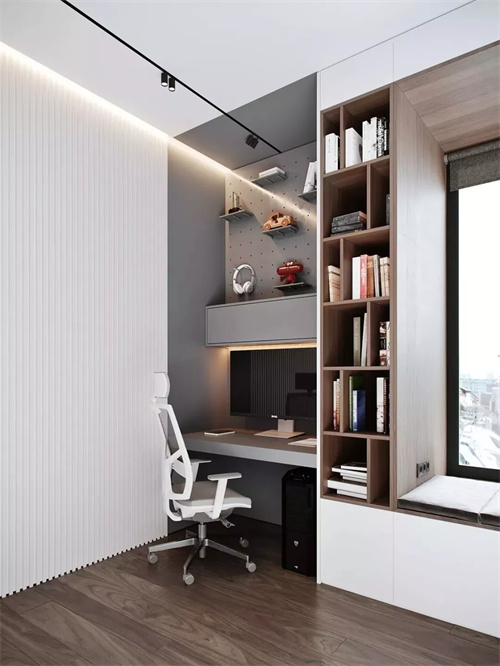 在寸土寸金的城市中,没必要单独开辟出一间书房,在卧室里你可以定制出一个舒适、安静的学习区。