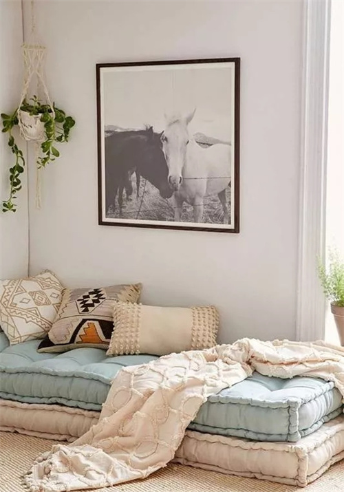 在飘窗上,放上软软的垫子和抱枕。睡前看书放空,周末喝茶聊天,给生活来点小确幸。